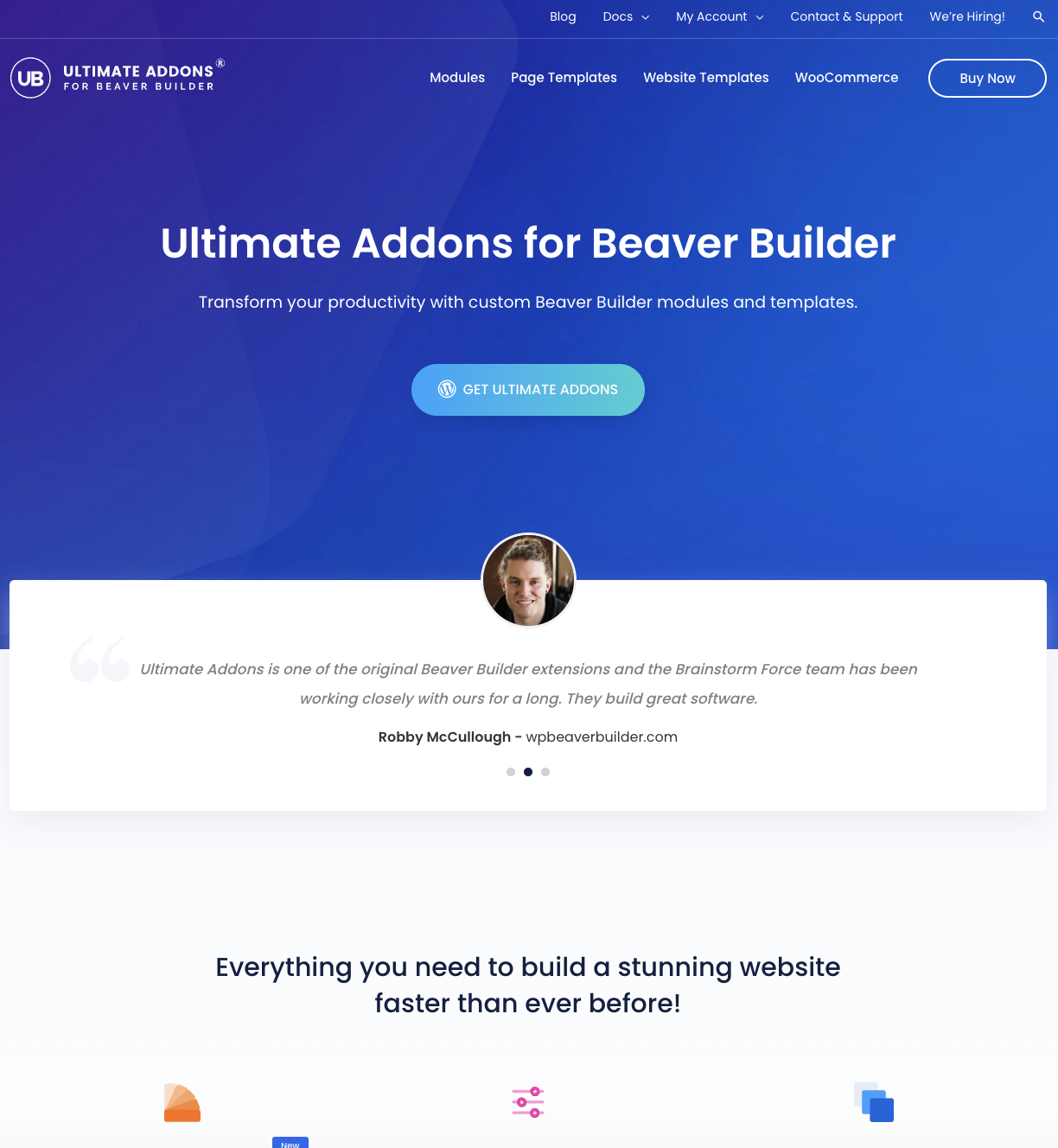 Ultimate Addons for Beaver Builder, giải phóng thời gian của bạn khỏi tất cả quá trình phát triển trang web phức tạp bằng các mô-đun và mẫu kéo và thả dễ sử dụng giúp quá trình này nhanh chóng và dễ dàng.
